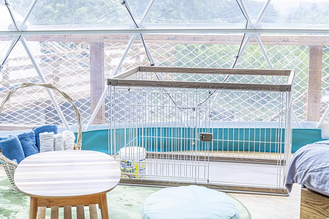 Limited to one group per day, the Dog Dome is a 7-meter tent where you can stay with your beloved dog. Equipped with pet amenities in the room, enjoy a luxurious stay together with your furry friend.