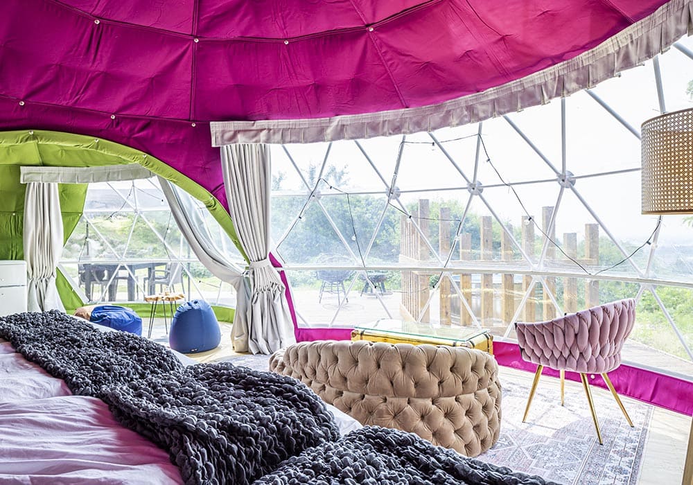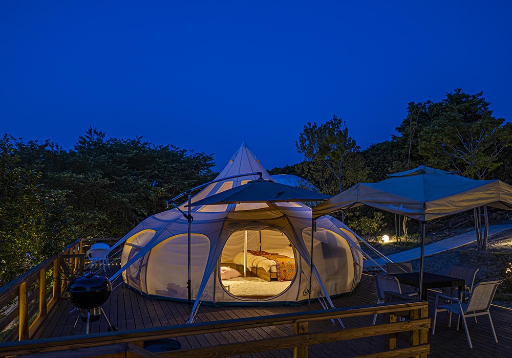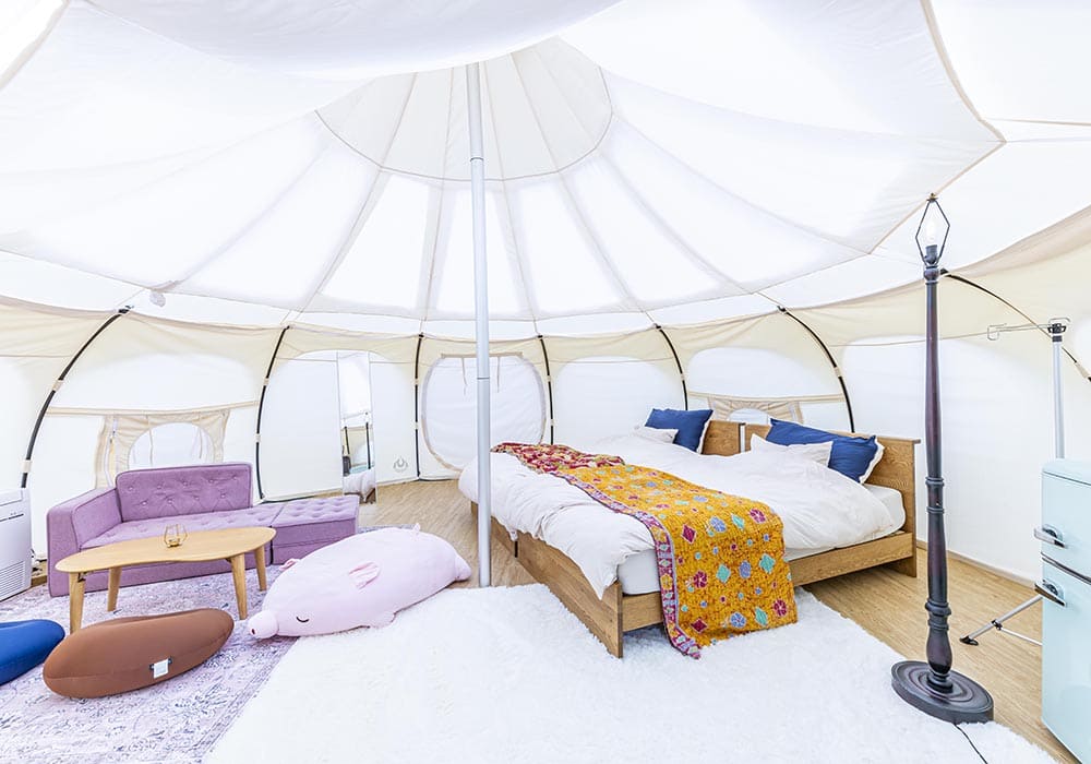 Perfect for those seeking an outdoor-style stay, the Lotus Belle Tent is a cotton tent that brings you closer to nature. While offering a more camp-like experience than dome tents, it is equipped with a floor-standing air conditioner to ensure a comfortable stay all year round.